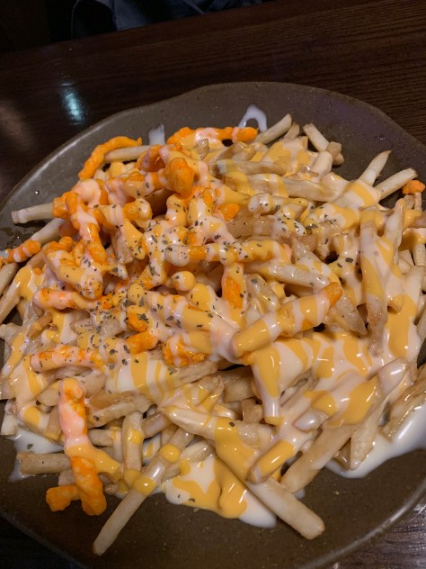The Kimchi Fried Rice was good. The rice is soft and the spiciness is just perfect in your mouth. The bogolgi glass noodles makes a good appetizer. It’s on the main course section but it’s really small. It’s more of an appetizer. The broth is sweet and the noodles soaks in that broth making it more tasty. The cheese doodles and cheese fries make an interesting combo. Personally I like the fries more than the doodles.